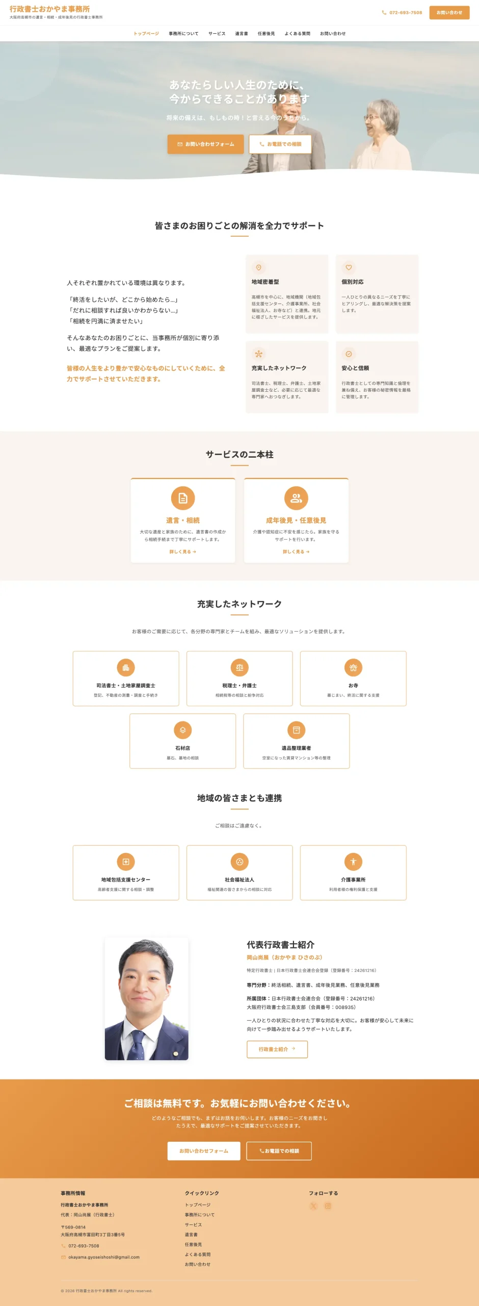 行政書士おかやま事務所 様 2026年2月20日 最終更新日時 : 2026年2月20日 soog_sun サイトを見る 行政書士おかやま事務所 | 大阪府高槻市の遺言・相続・成年後見の行政書士事務所 大阪府高槻市の行政書士事務所。遺言・相続、成年後見、法人業務に対応。地域密着型で個別対応を実現します。 http://www.okayamaoffice.com